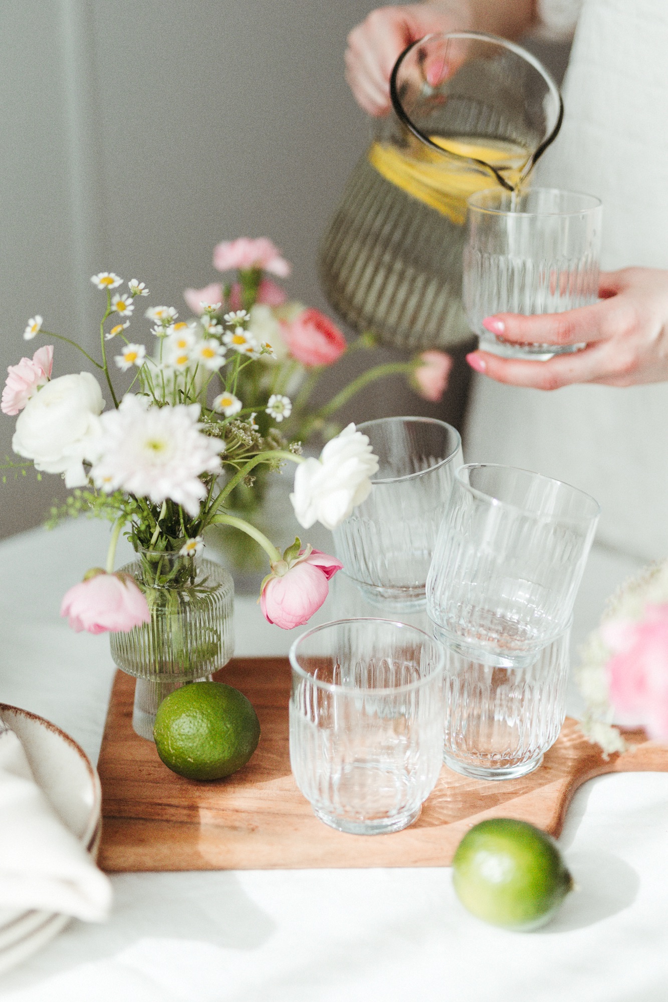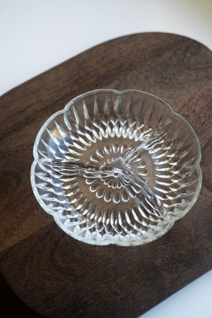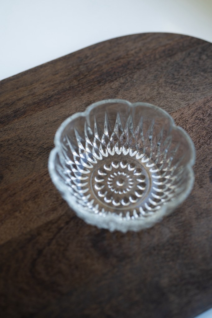 lasinen tarjoilukulho väliköillä