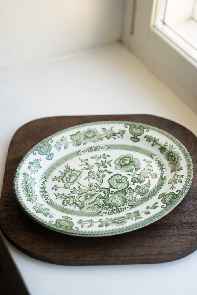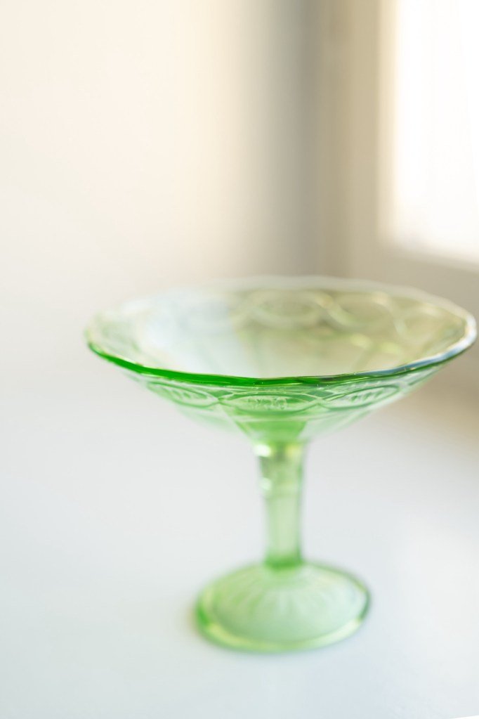 vihreä jalallinen tarjoiluastia