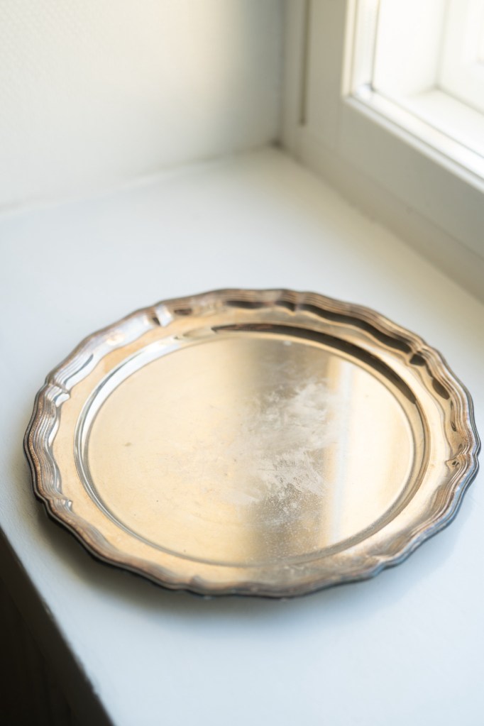 hopean värinen kakkutarjotin